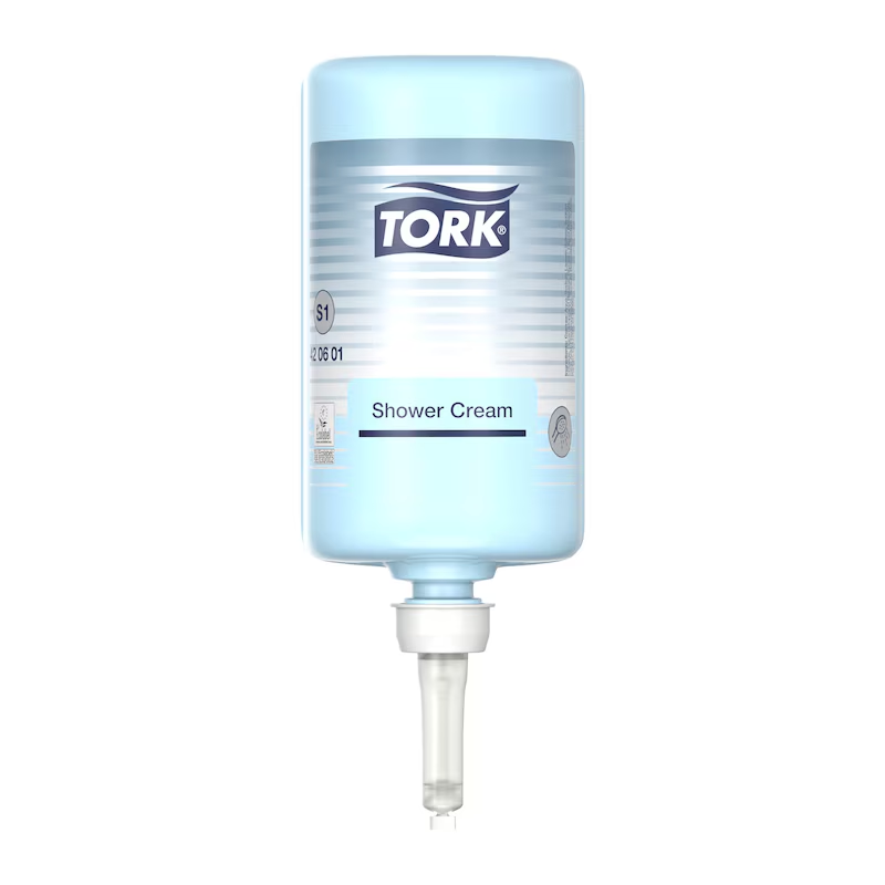 Tork kremowy żel pod prysznic do hoteli, szkół i obiektów sportowych to łagodna, nawilżająca formuła kremu myjącego o odświeżającym, uniwersalnym zapachu, która dba o miękkość skóry. Pasuje do dozowników Tork S1 do mydła w płynie i sprayu, które wyróżniają się potwierdzoną łatwością w użyciu i zapewniają wysoki poziom higieny rąk.